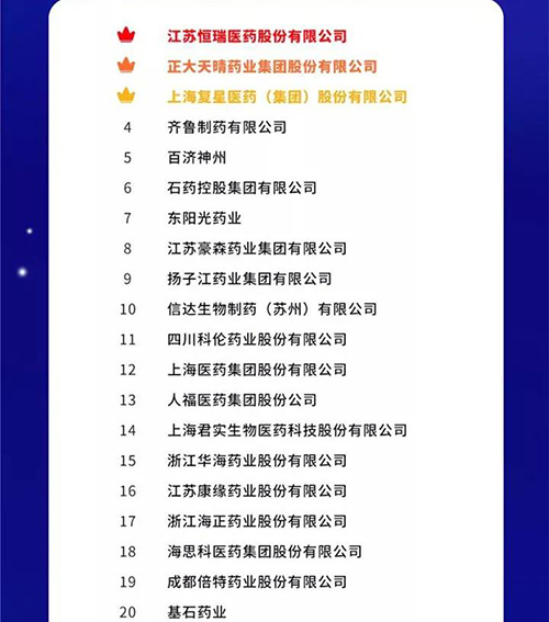 9月18日,2021中国药品研发实力排行榜系列榜单在“2021大健康产业高质量发展大会暨第六届中国医药研发·创新峰会(PDI)”隆重揭晓。开云电竞集团位列2021中国药品研发综合实力排行榜TOP100第13位。