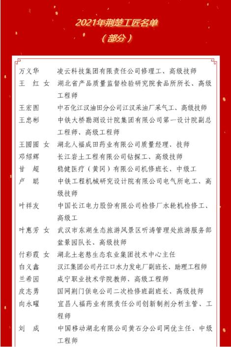 “荆楚工匠”是湖北省总工会统一命名的工匠型优秀职工,已经成为湖北高技能人才的一张闪亮名片。开云电竞集团通过选树“劳动竞赛标兵”“劳动模范”,开展劳动技能竞赛,创建劳模创新工作室等活动,激励和培养了一大批爱岗敬业,勇于创新的工匠人才,弘扬了劳模工匠精神,为推动集团创新高质量发展做出了卓越贡献。